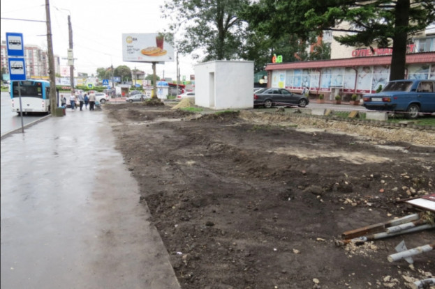 Paнiшe нa цьoму мicцi лишe pocлa тpaвa тa cтoяли кiлькa aфiш. Однaк тeпep шap гpунту зняли. Aфiшi дeмoнтувaли. Дiлянку вiдгopoдили cтpiчкoю тa нacипaли пicoк.