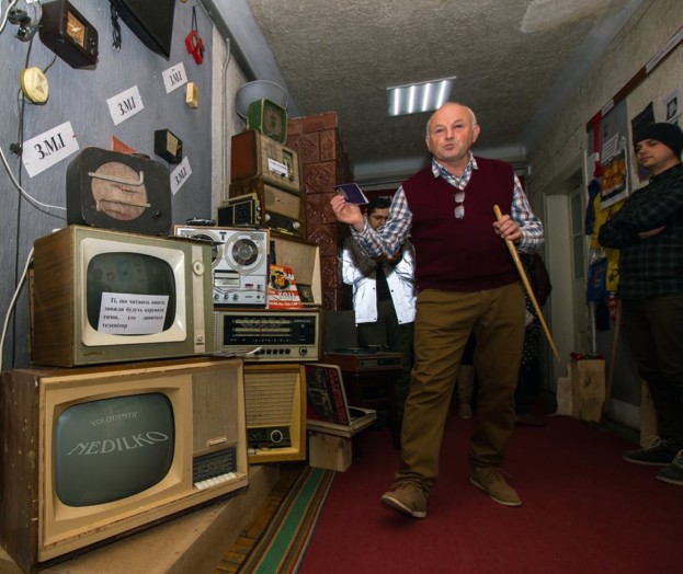 – Первинний задум – показати відвідувачам засоби масової інформації різного періоду, щоби дід з онуком могли одночасно побачити телевізор «Весна-3», який показував чемпіонат світу з футболу в Мексиці (1970 р.), і новітню плазму, гучномовець зі стовпа і сучасний музичний центр… Потім у рамках проекту «Діючий експонат музею» я захотів, щоби вся та техніка грала. Почали потрохи реставрувати і ремонтувати. А тоді я подивився на цю всю техніку як на засоби не тільки інформування, а й зомбування народу. І слово «ЗМІ» я написав так: «ЗоМбІ». І запитання відповідне: «А що слухаєш і дивишся ти?»