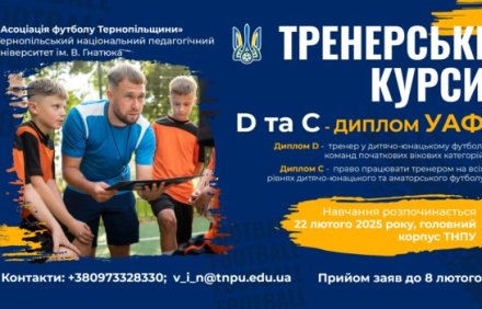 З 22 лютого 2025 року на базі Тернопільського національного педагогічного університету імені Володимира Гнатюка Асоціація футболу Тернопільщини розпочинає навчання тренерів футболу за програмами «Д»...