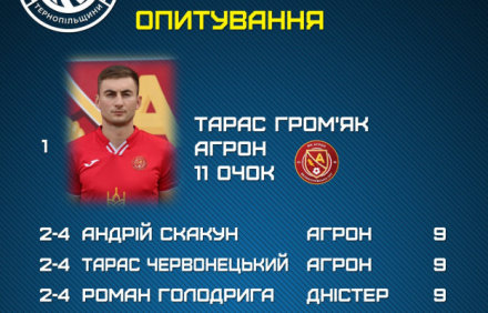 За традицією Асоціація футболу Тернопільщини визначає кращого гравця вищої ліги шляхом опитування головних тренерів і капітанів команд. Кожен респондент мав представити свою трійку кращих,...