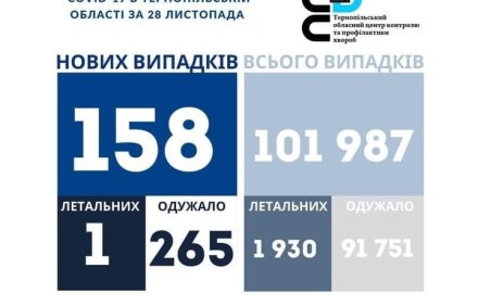 58 нових випадків коронавірусної хвороби COVID-19 зафіксовано в Тернопільській області за 28 листопада. Про це повідомляє Державна установа «Тернопільський ОЦКПХ МОЗ України» Також за...