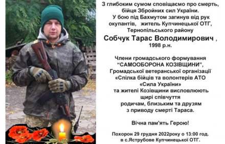 З глибоким сумом сповіщаємо про смерть ще одного бійця Збройних сил України з Тренопільщини. У бою під Бахмутом загинув від рук окупантів, житель Купчинецької...
