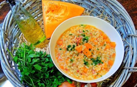 Різото з гарбузом вважають селянською стравою, що належить до низки найкращих страв італійської традиції, де лише інтуїція, практика та фантазія знають, як перетворити жовтий...