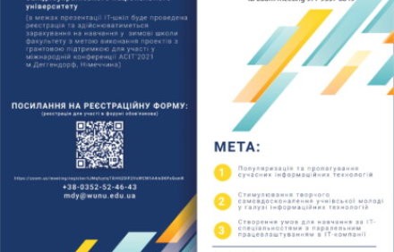 14 листопада 2020 року о 10:00 год розпочнеться ІІІ Західноукраїнський онлайн-форум «ІТ-перспектива» (онлайн: ID zoom meeting 977 9557 6849, https://zoom.us/meeting/register/tJMqfuytqT0iHt2OlF2VxWCM1A4mSKPxGxmR), до участі у якому...