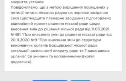На засіданні виконавчого комітету було підтримано петицію «Розірвати всі договори міста Тернополя та УПЦ МП», яка у встановлений термін набрала понад 300 голосів....