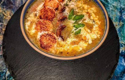 Складники: 10 печериць середнього розміру; 3 невеликих картоплини; 1 морквина; 1 ріпчаста цибулина; 1 ст. л. борошна; 2-3 ст. л. сметани; сіль, перець –...