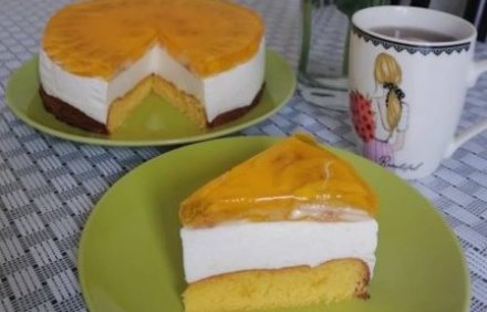 Інгредієнти (на форму 22 см): Бісквіт – 2 яйця; – 70 г цукру; – 60 г борошна; – 1ч. л. розпушувача. Випікаємо 15 хв....