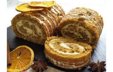 Морквяний бісквіт: яйце – 150 г цукор – 120 г борошно – 120 г морква – 100 г грецький горіх – 50 г олія...