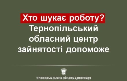 Хто шукає роботу? Тернопільський обласний центр зайнятості допоможе із пошуком роботи, а якщо ви підприємець – з пошуком працівників. Зараз на Тернопільщині актульні 857...