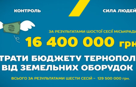 Лише за одну сесію міськради втрати бюджету Тернополя від земельних і не лише земельних оборудок склали понад 6 мільйонів гривень. Цю цифру оприлюднила опозиційна...