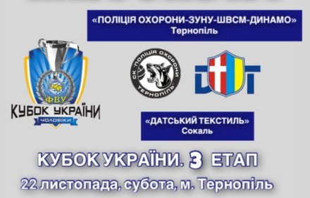 Волейбольна команд «Поліція охорони-ЗУНУ-ШВСМ-Динамо» з Тернополя учора, 22 листопада, здолавши ВК «Датський текстиль» з Сокаля Львівської області – 3:0, здобула путівку до четвертого етапу...