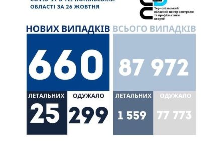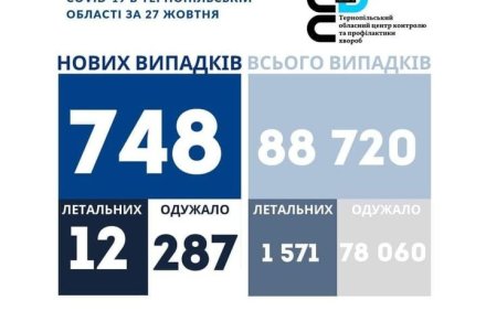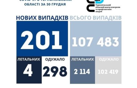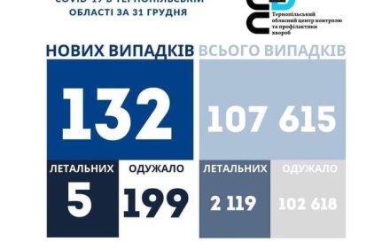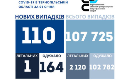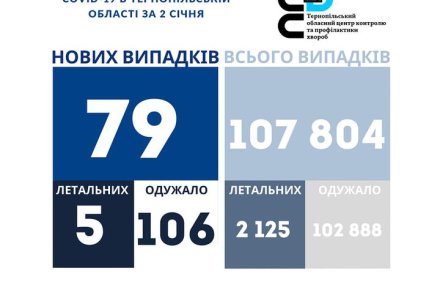 1 057 нових випадків коронавірусної хвороби COVID-19 зафіксовано в Тернопільській області за 20 січня 2022 року. Про це повідомляє Державна установа «Тернопільський ОЦКПХ МОЗ...