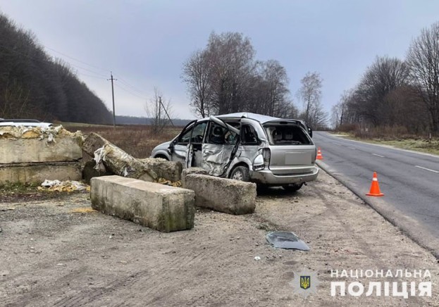 За попередніми даними, 32-річний житель Кременецького району на заокругленій ділянці дороги не впорався з керуванням автомобілем «Chrysler Raw Van» і в’їхав у бетонні плити.