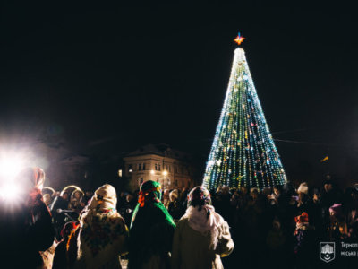 Нагадаємо, цього року в Тернополі була встановлена штучна ялинка висотою 18,5 м, прикрашена 3D-ілюмінацією з світловими ефектами та новорічними прикрасами ручної роботи, створеними вихованцями садочків, шкіл і представниками закладів культури у рамках конкурсу «Різдвяне диво».