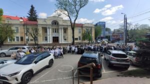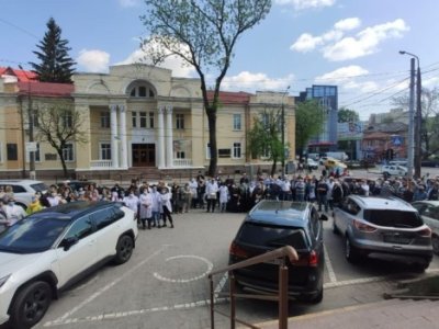150 працівників Тернопільської районної лікарні зібралися біля Господарського суду. Там відбувалося засідання щодо приміщення Тернопільської районної лікарні. Про це розповів виконувач обов’язків генерального директора лікарні Володимир Лісовський.