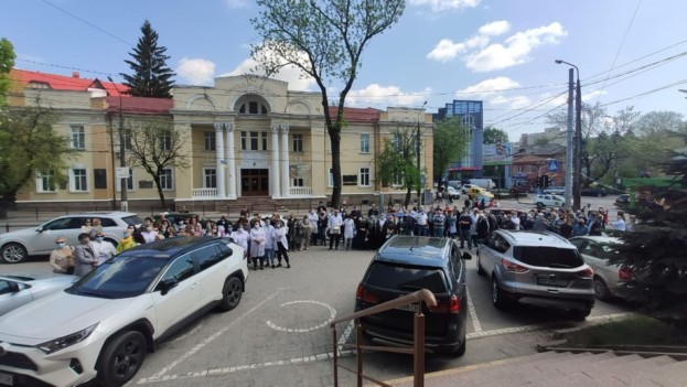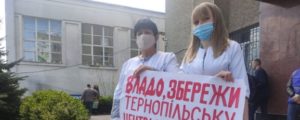 150 працівників Тернопільської районної лікарні протестували біля Господарського суду