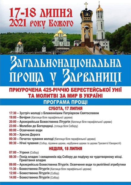Пропонуємо вашій увазі ознайомитися із програмою загальнонаціональної прощі до Зарваниці (17-18 липня 2021 р):