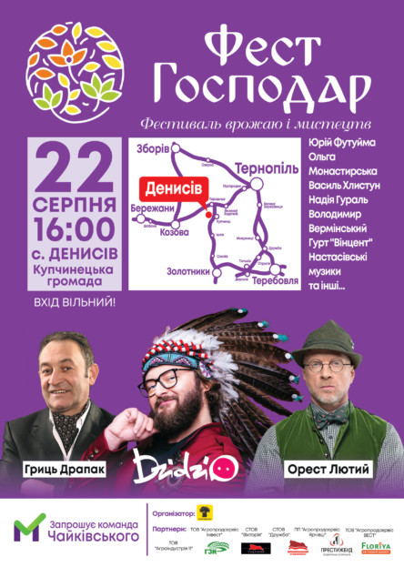 Перший фестиваль урожаю та мистецтв «Фест Господар», започаткований компанією «Агропродсервіс», відбудеться в неділю, 22 серпня,  у с. Денисів Купчинецької громади.