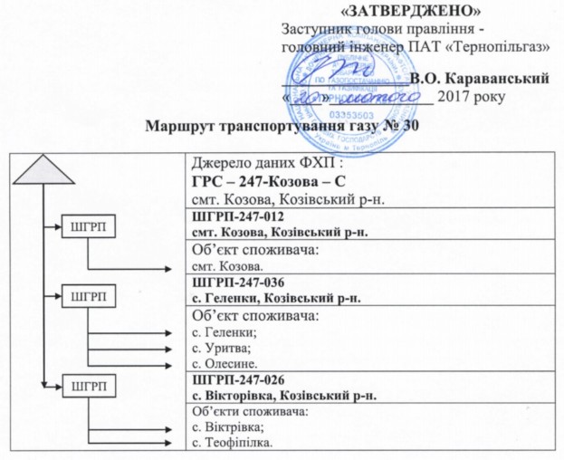 У вівторок, 27 липня 2021 року, Бердичівським лінійним виробничим управлінням магістральних газопроводів ТОВ «Оператор газотранспортної системи України» буде припинено газопостачання із ГРС Козова, згідно маршруту транспортування газу №30, у зв’язку з проведенням планових ремонтно-профілактичних робіт.