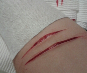 Жінка скаржилася на кровотечу із зап’ястя правої кисті, рану та біль. За словами пацієнтки, з метою суїциду вона порізала собі руку ножем… Із різаною раною зап’ястя правої кисті, після зупинення венозної кровотечі, потерпілу шпиталізовано у лікарню швидкої допомоги.