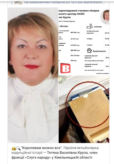 Ця кримінальна драма шокує глибиною беспрєдєлу та безкарності влади.Затримання 5 жовтня Тетяни Крупи – депутата партії Слуга народу, головної лікарки Хмельницької медико-соціальної експертизи, яка за хабарі масово оформляла свідоцтва про інвалідність, та її сина Олександра Крупи, начальника Пенсійного фонду Хмельницької області, які зберігали вдома у готівці та за кордоном у Австрії, Польщі, Туреччині та Іспанії понад 10 мільйонів доларів, та володіють трьома десятками будинків в Україні та Європі, викликала основне питання – так хто ж дозволяв Тетяні Крупі діяти на одній посаді безперервно 16 років? Про це пише головний редактор видання Цензор.нет Юрій Бутусов.