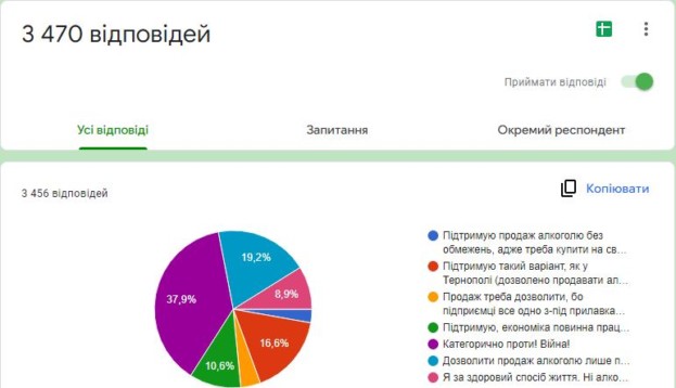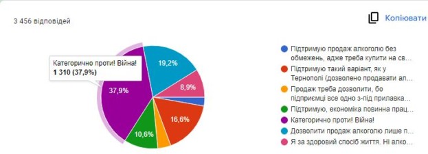 Згідно із результатами опитування, 37,9% категорично проти відновлення продажу алкоголю, тому Чортківська міська рада не прийматиме наразі жодних рішень про дозвіл.