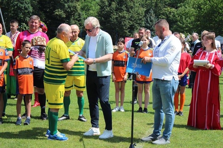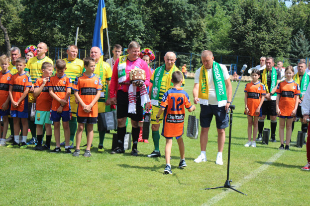 Опісля вітальних слів футболісти та тренери обох команд отримали від організаторів символічні подарунки на пам’ять про спортивне дійство.
