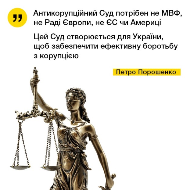 Та й Президент Петро Порошенко заявив, що «ми приймаємо цей закон не для Міжнародного валютного фонду, не для США і Європи, а для України”. Варто зазначити, що за Антикорупційний суд проголосовано саме в день 4-ї річниці президентства Порошенка.