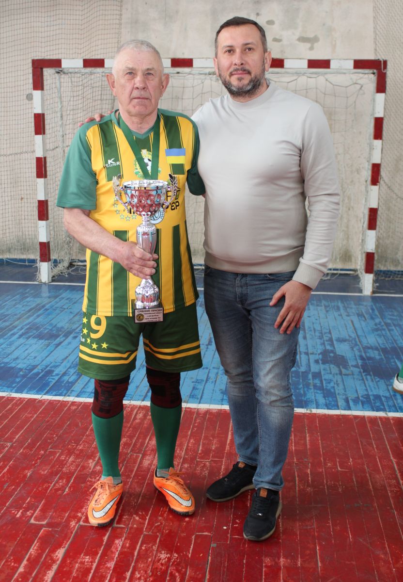 Далі Тарас Зіновійович приступив до найцікавішого – вручення нагород. Спершу спеціальну відзнаку отримав найстарший гравець чемпіонату – Ігор Залевський з команди «Євроінтер’єр», котрому через три місяці виповнюється 80(!) років.