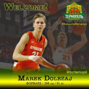 БК Тернопіль оголосив про підписання форварда Марека Долежая.