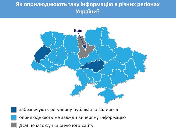 Інформація щодо наявних ліків та медичних виробів, які закуповуються за бюджетні кошти, в медичних закладах має оприлюднюватись на офіційних web-сайтах департаментів охорони здоров’я обласних держадміністрацій, а також сайтах медзакладів та в самих медзакладах. Проте далеко не в усіх регіонах виконують цю вимогу, в більшості оприлюднюють інформацію частково або нерегулярно, в деяких випадках сайти для пошуку цієї інформації є не дуже зручними. Тому МОЗ працює над створенням єдиної електронної системи обліку залишків ліків, що дозволить ефективно управляти процесами їх постачання та використання у медзакладах. Окрім того, готуються зміни до законодавства, які передбачатимуть посилення контролю за оприлюдненням інформації щодо залишків ліків та встановлення покарання за невиконання цієї вимоги.