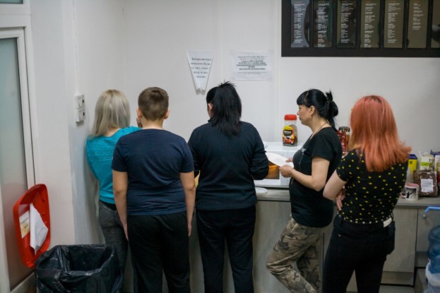 «Ми зіштовхнулися з ситуацією, коли притулок шукали і люди з домашніми улюбленцями. Поселяти їх в приміщенні, де є багато маленьких діток ми не наважилися, тож ще одне приміщення, офіси, переобладнали для мешканців, які мали тварин. І, в підсумку в нас було близько 90 місць у спорткомплексі та ще майже 20 в офісних приміщеннях. Завдяки рестораторам-благодійникам наші мешканці були забезпечені й повноцінним 2-разовим харчуванням. Окрім цього, для переселенців доступні чай/кава та різні смаколики».