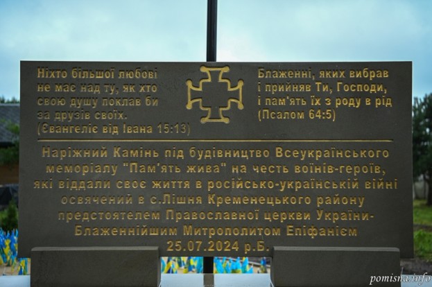 Як повідомляє пресслужба Тернопільської єпархії ПЦУ на завершення Першосвятительського візиту Блаженнійший Митрополит Епіфаній звершив освячення місця під будівництво Всеукраїнського меморіалу «Памʼять жива» на честь воїнів-героїв, які віддали своє життя в російсько-українській війні.