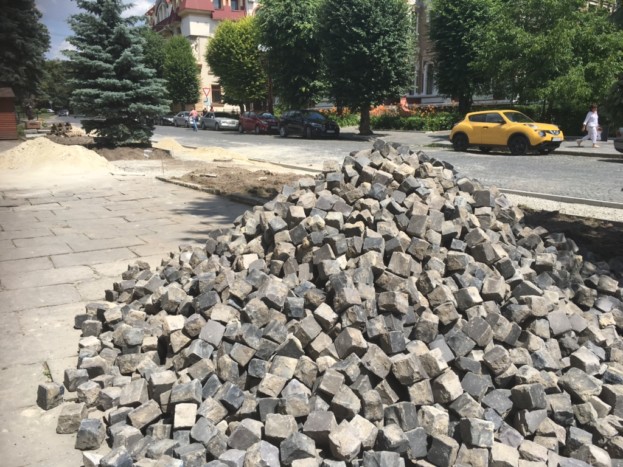 «Під час проведення реконструкції передбачене розбирання бруківки площею 1078 кв.м. Уся бруківка буде передана на територію підрядної організації для зберігання, одночасно її використовуватимемо для ремонту інших об’єктів. Зокрема, проїжджої частини біля бульвару Шевченка, при влаштуванні пішохідної зони на вул. Академіка Брюкнера, тощо».