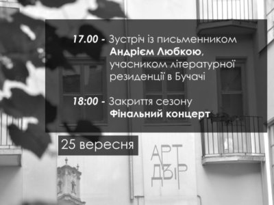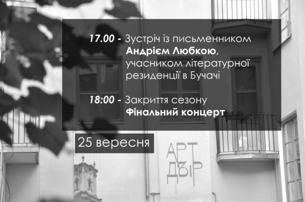 25 вересня о 17 годині в культовому просторі «Арт-Двір», що в місті Бучач, відбудеться закриття 5-го сезону проекту, який став для жителів міста справжнім храмом краси та мистецтва.