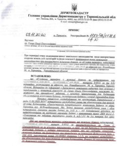 Першу перевірку проводить Головне управління Держгеокадастру в Тернопільській області 09.11.2020 року. Цитуємо дані з припису ГУ ДГК: