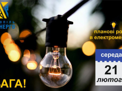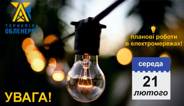 У середу, 21 лютого, тимчасово буде знеструмлено частину споживачів Тернопільської області. Про це повідомили у ВАТ “Тернопільобленерго”.
