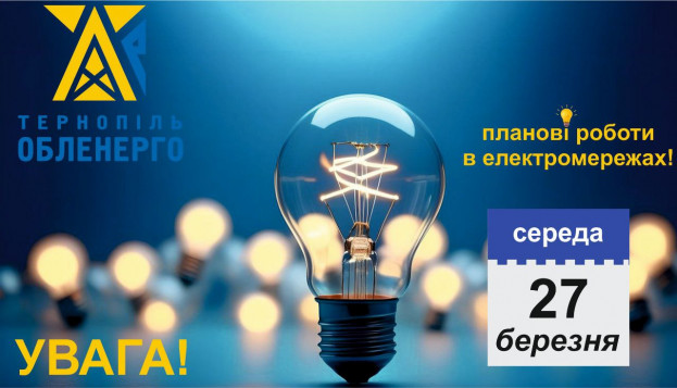 У деяких населених пунктах Тернопільщини сьогодні, 27 березня, плануються роботи для поліпшення забезпечення електроенергією.