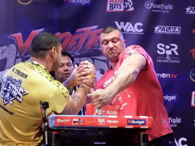 – У мене з ним контракт, він мій промоутер, але, за умовами, суми контракту я не розголошую, – констатує Андрій Пушкар. – На змаганнях я боровся з Дмитром Трубіним із Казахстану. Вперше зустрівся з ним на Кубку світу серед професіоналів у 2015 році. Це надзвичайно перспективний, сильний, талановитий, 27-річний атлет. Тоді він дав мені гідний супротив, у запеклих сутичках ми близько 10 хвилин з ним боролися, ні я його не міг побороти, ні він мене, але все-таки технічно я здобув перемогу. Та було багато питань, і щоб не піддавати сумніву попередню перемогу, вирішили провести додатково армфайт – шестираундовий поєдинок. Цього разу Дмитро теж був у дуже хорошій формі, але я здобув перемогу.