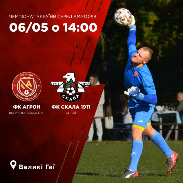 Сьогодні, 6 травня, чемпіон Тернопільської області з футболу 2022 року великогаївський «Агрон» провів другий офіційний поєдинок у 2023 році. У рамках 9-го туру аматорського чемпіонату України на домашньому стадіоні наші земляки програли стрийській «Скалі-1911» – 0:3.