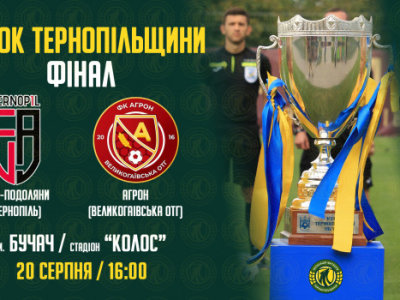 Завтра, 20 серпня, у Бучачі відбудеться фінальний матч кубку Тернопільської області з футболу 2023 року. Зустрічатимуться діючий обласний чемпіон і лідер поточної першості – великогаївський «Агрон» та молода, амбітна команда з Тернополя – «ФАТ-Подоляни».