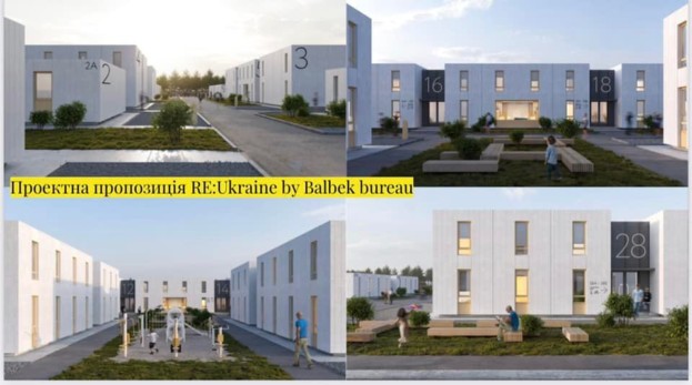 Проект для комплексу, що буде розташований у Збаражі біля озера, стильний і розроблений balbek bureau. Це сучасний проект RE:Ukraine, спроектований так, щоби люди, що вимушено лишили свої домівки, до моменту повернення додому жили в гідних умовах і мали все необхідне.