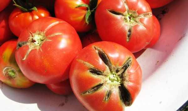 З однієї сторони – ну потріскалася шкурка плодів, адже нічого страшного в цьому немає! Це ж не хвороба. Але і приємного в появі такого недоліку теж мало. Навіть якщо не брати до уваги те, що помідори, які лопнули, втрачають свою привабливість і товарний вигляд (а це дуже погано для фермера, що вирощує томати на продаж), нікуди не дітися від сумних наслідків, яких чекають «порвані» плоди. Справа в тому, що тріщини є воротами для проникнення всіляких грибків, вірусів і бактерій. Крім того, ароматний томатний сік заманить і комах – любителів солодкого овочу. Якщо помідори ростуть у теплиці, де інфекції поширюються дуже швидко, то, швидше за все, такі плоди захворіють, і частина врожаю до моменту збирання буде втрачена. Правда, є надія на те, що ранки встигнуть затягнутися корковою тканиною ще до того, як на неї потрапить інфекція.