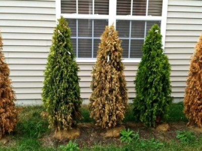 Неправильно підготовлений ґрунт або вибране місце також впливають на колір крони. У повністю торфовому ґрунті корені починають гнити, а на піщаному – рослина не розвиватиметься нормально. Тому для туї ідеальним варіантом є дернова земля з додаванням торфу та піску.
