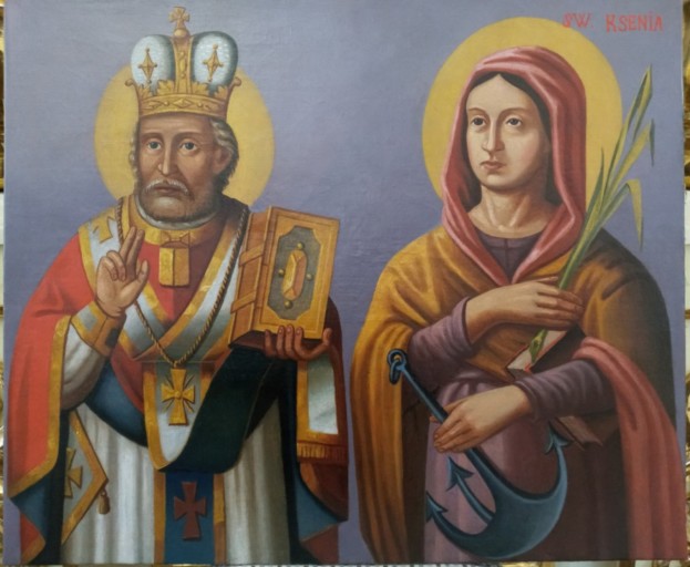 Ікона Святої Ксенії до реставрації та після. Якір який тримає Ксенія у руках є символом надії