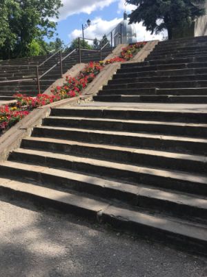 – Доводиться шукати інші шляхи, щоби потрапити в парк. Або просити когось із чоловіків (якщо пощастить зустріти на шляху) допомогти знести чи винести коляску, або долати стрімкий підйом/спуск поряд зі сходами, де вже втоптана стежка. Скажу відверто, це далеко не кожній жінці під силу. Давно пора тут пандуси поставити, але, на жаль, нікому нема діла до цього, – скаржиться тернополянка Тетяна Костецька, яка щодня гуляє з маленьким сином у парку Національного відродження.