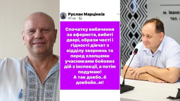 Міський голова Івано-Франківська Руслан Марцінків, реагуючи на вимогу громадського активіста Богдана Козака надати публічні вибачення, заявив, що не дозволить ображати своїх працівників, і може вибачитися лише після того, як активіст перепросить за образи працівників міськвиконкому, в тому числі – жінок та учасників бойових дій.
