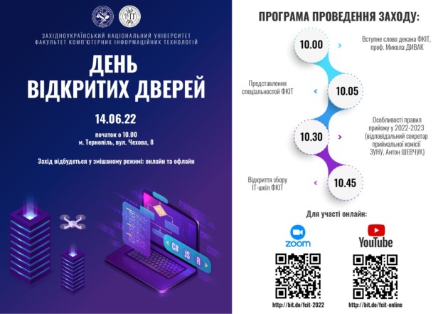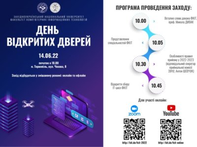 14 червня 2022 року о 10:00 год відбудеться День відкритих дверей факультету комп’ютерних інформаційних технологій Західноукраїнського національного університету.