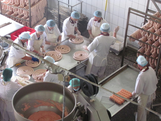Далі відбувся огляд самого підприємства. Що цікаво, перед тим як переступити поріг виробничих цехів, не дивлячись на різні титули та посади, всю тернопільську делегацію попросили зняти золоті прикраси та залишити мобільні телефони. Кожного одягнули в халат, шапочку, гумові рукавички та бахіли. При цьому дана процедура відбувалася двічі. Перший раз нас одягнули, коли ми заходили у цехи, де робітники працювали з яловичиною, другий – з курятиною. А все тому, що на підприємстві впроваджено систему контролю за якістю харчової продукції ХАСП і її на «Масар-Агро» намагаються суворо дотримуватись.
