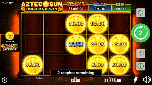 Aztec Sun: Hold and Win — це гра, яка розігрується на 5 барабанах і 25 лініях виплат. Він поставляється з 3 рівнями джекпоту, які запропонують миттєвий приз, коли ви виконаєте необхідні умови. Обертаючи барабани, ви можете дочекатися, поки випадуть символи Wild і Scatter, щоб отримати найбільшу виплату в грі. Ви маєте можливість забрати додому джекпот, який у 1000 разів перевищує суму ставок.